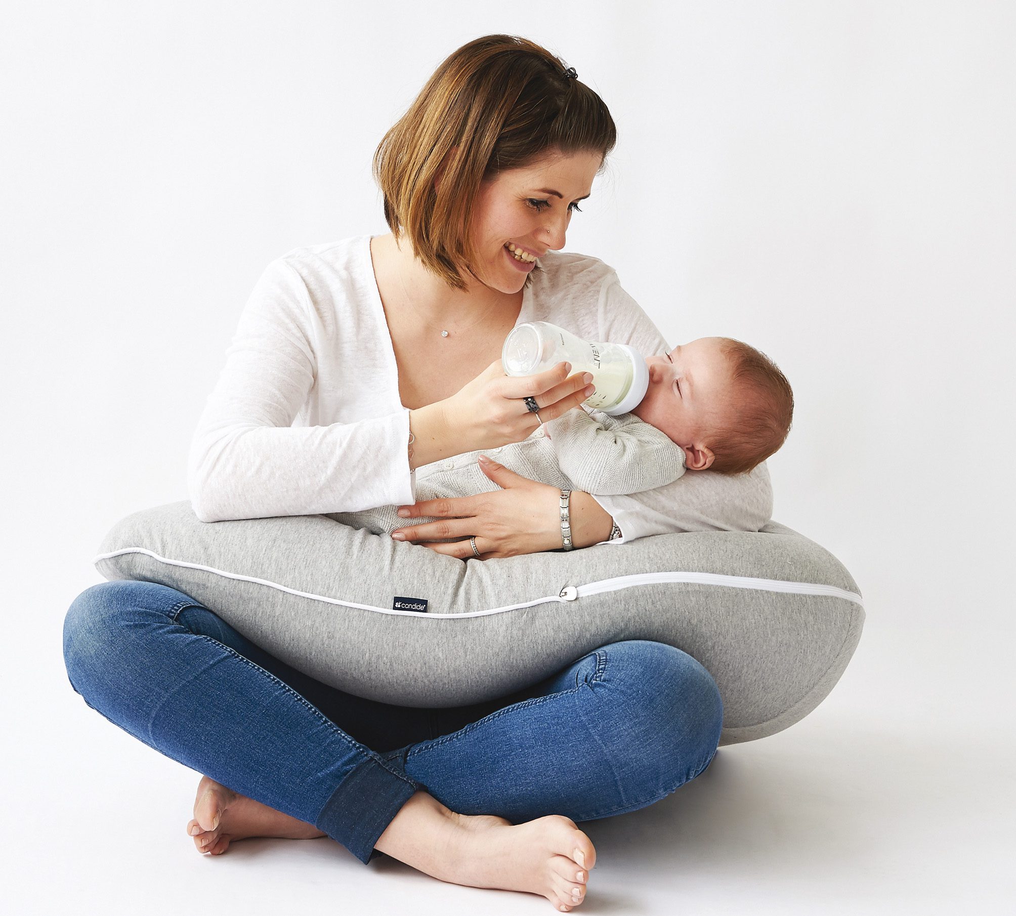 Le 1er coussin de maternité transformable en position transat pour bébé, à la fois confortable et sûr grâce à sa culotte réglable.
