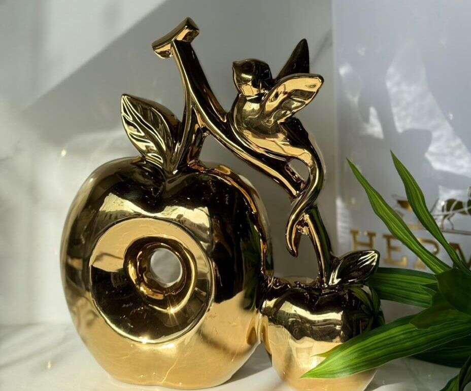 Home » Produits » Ornement décoratif doré – Pomme & Oiseau stylisé