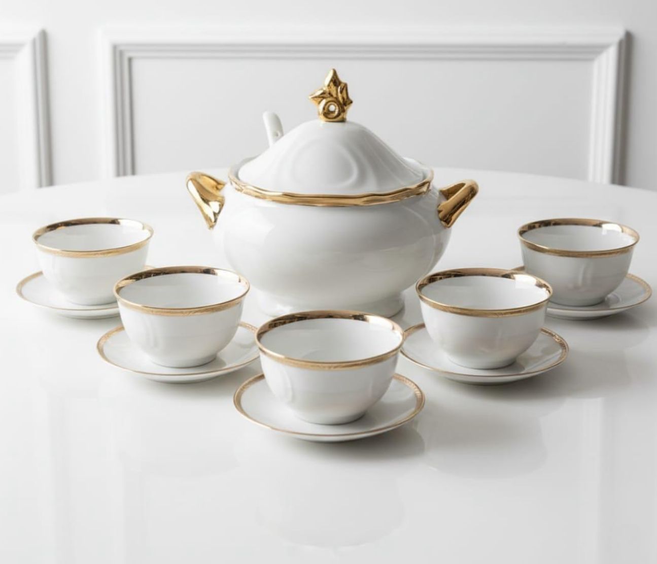 • 1 soupière raffinée avec son couvercle