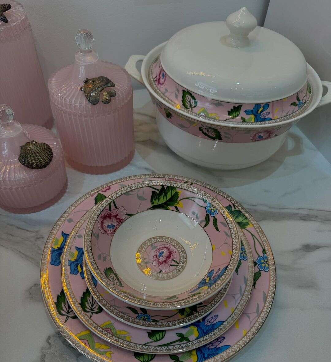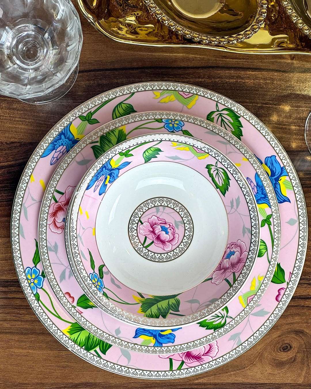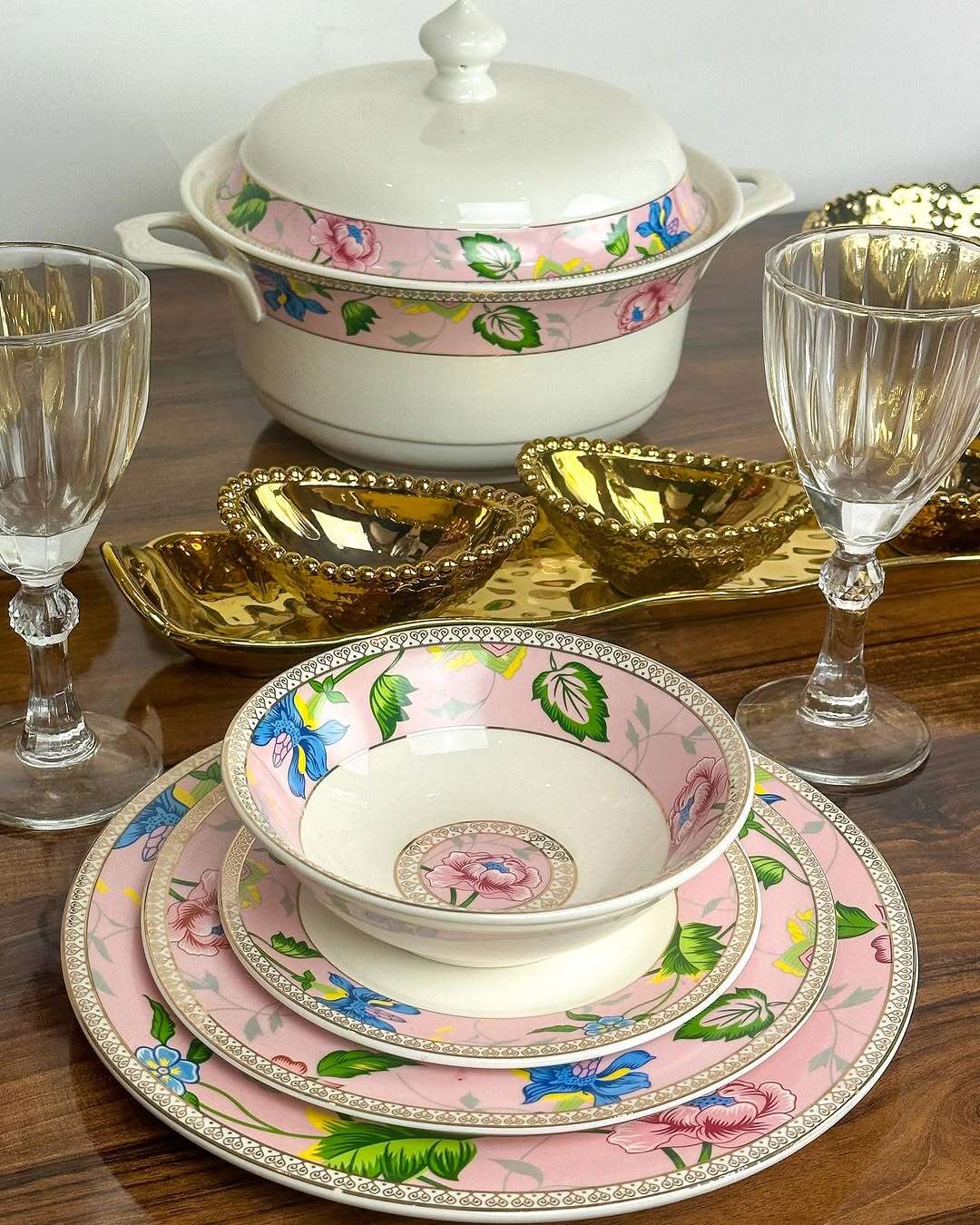Service de Table de 25 Pièces – Éclat Floral en Rose