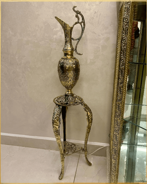 Apportez le charme d’antan chez vous avec notre vase antique en cuivre sur pieds, une œuvre d’artisanat qui respire l’élégance et le passé glorieux.