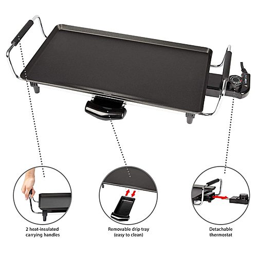 Le Multi Grill / Teppan yaki Grill permet la préparation de grillades japonaises à table, pour des repas sains et faibles en calories. Avec cette grille, un grillage sans gras, inodore et propre est possible. Cela vous permet donc de faire griller du poisson, de la viande et des légumes, mais aussi de faire frire de manière optimale, braiser et cuire. Le plateau d’égouttement amovible est facile à nettoyer.