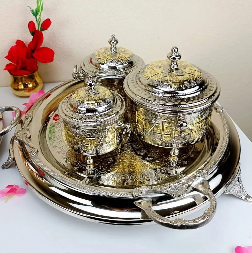Bougeoir Doré avec Support à 5 Bras en Verre