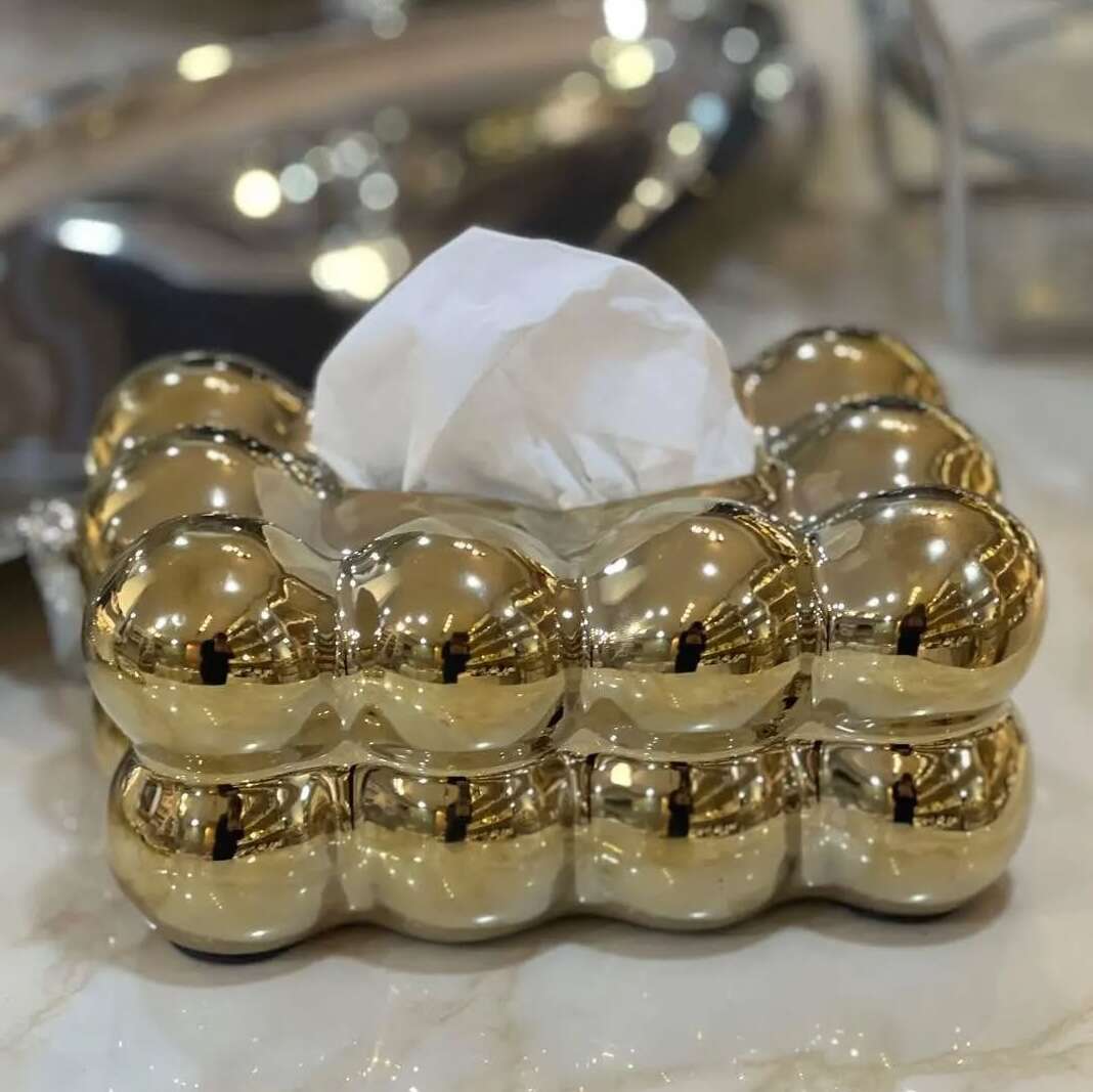 Apportez une touche moderne et élégante à votre intérieur avec la boîte à mouchoirs Bubble en finition dorée. Son design original et sa texture unique en font un accessoire à la fois pratique et décoratif, idéal pour toutes les pièces de la maison.
