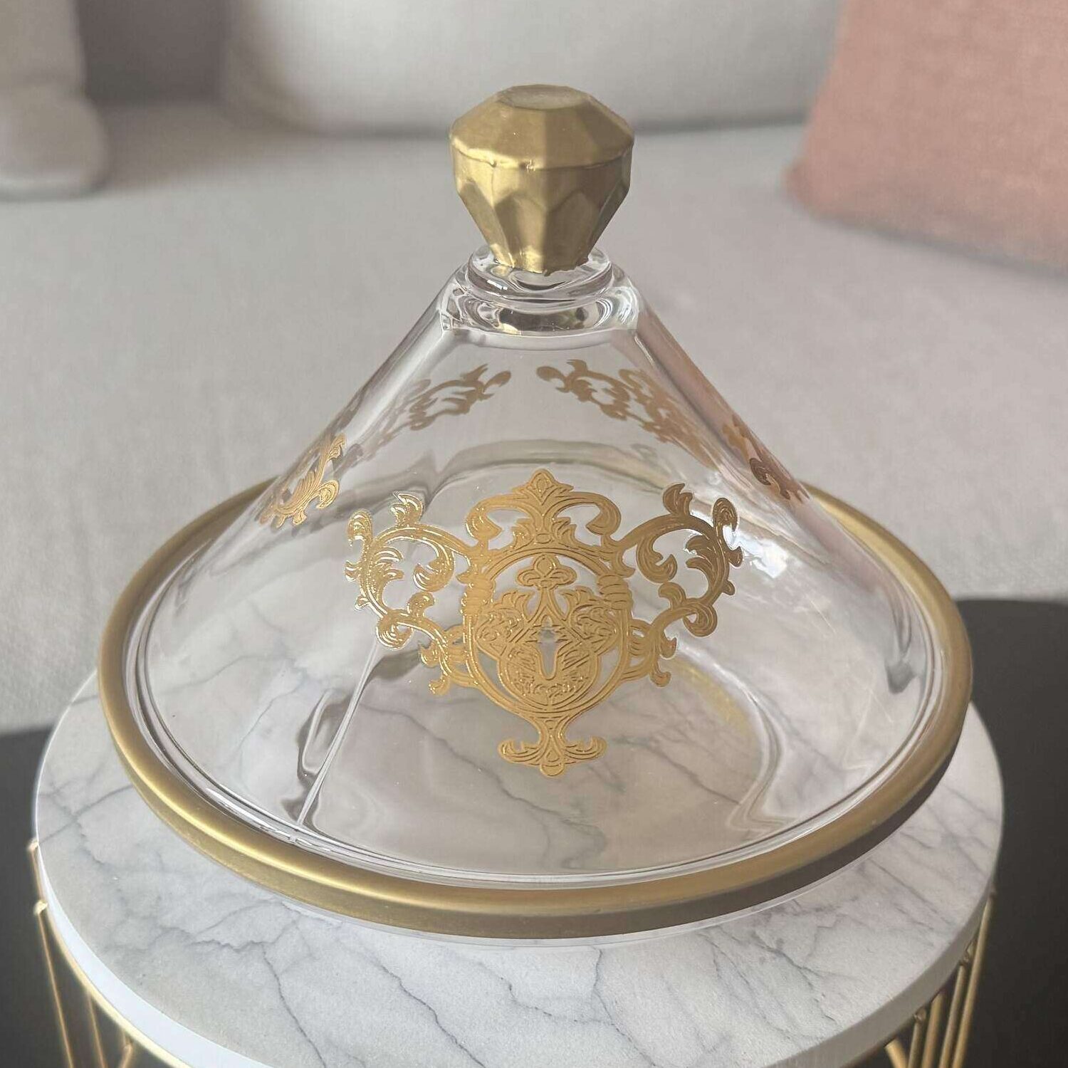 Mettez en valeur votre intérieur et la présentation de vos tables avec cette magnifique Tajine marocaine en Verre Transparent et Dorée. Une pièce raffinée qui allie la pureté du verre à l’éclat des dorures, apportant une touche de sophistication intemporelle.
